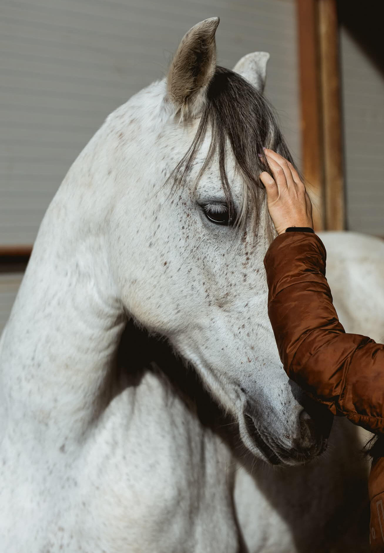 Pamela má španělský temperament plemene Pura Raza Española, ale přesto je to jemná a empatická duše.Její pohyby mají přirozenou eleganci a lehkost, která okamžitě upoutá pozornost. Vypadá, jako by se každý krok měnil v tanec, a přesto v jejích očích najdete klid, porozumění a ochotu navázat hluboké spojení.